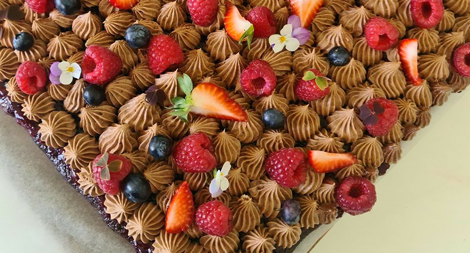 - En mazarinbund med lime, mørkchokolade, vanilje.