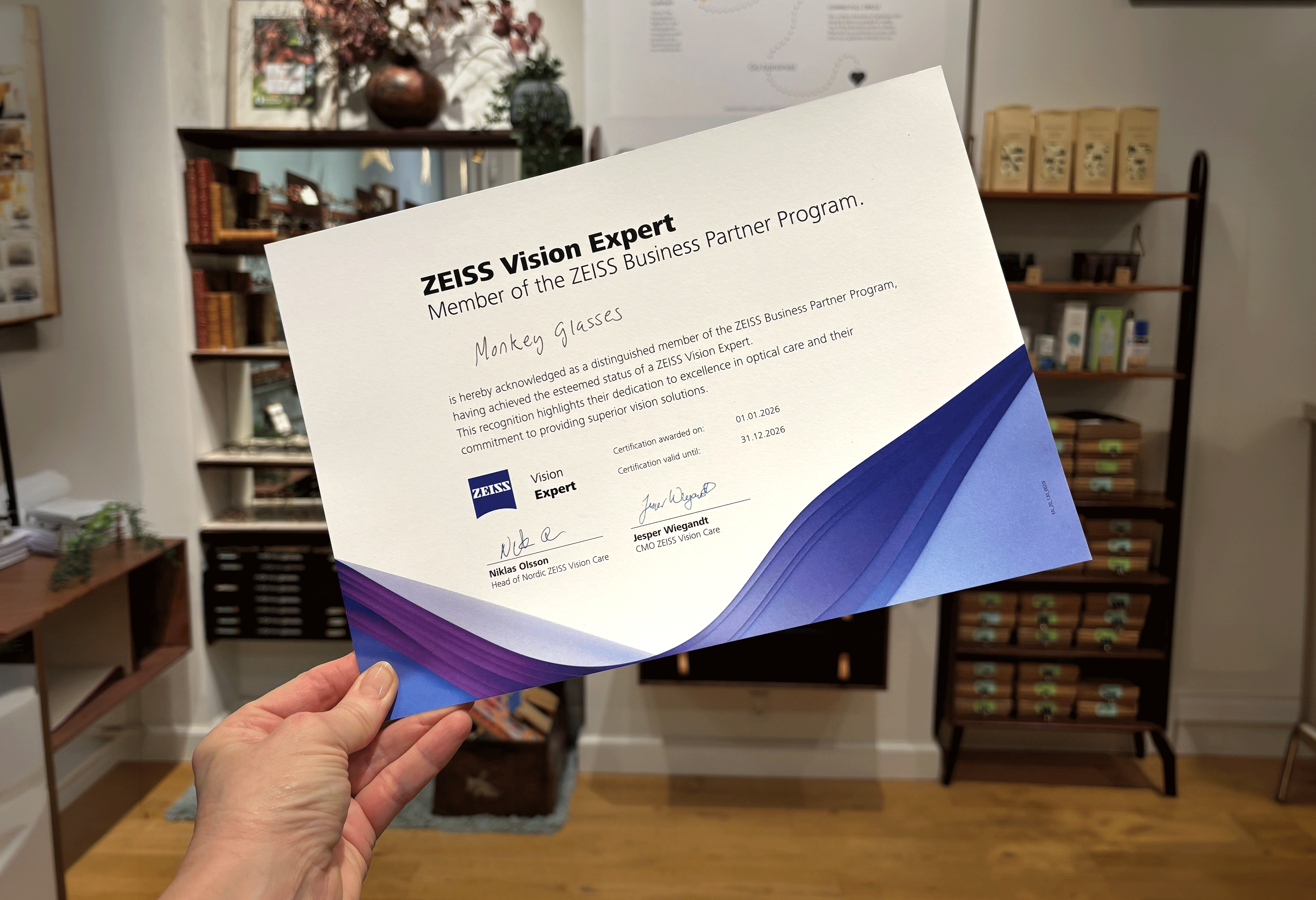 Husk at vi har dobbelt op på briller også med glas fra Zeiss og Alle vores optiker er certificeret hos Zeiss.