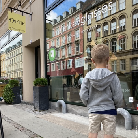 Børn under 10 år skal et smut til øjenlægenog så medbringe synsprøven når de prøver briller hos Monkeyglasses.